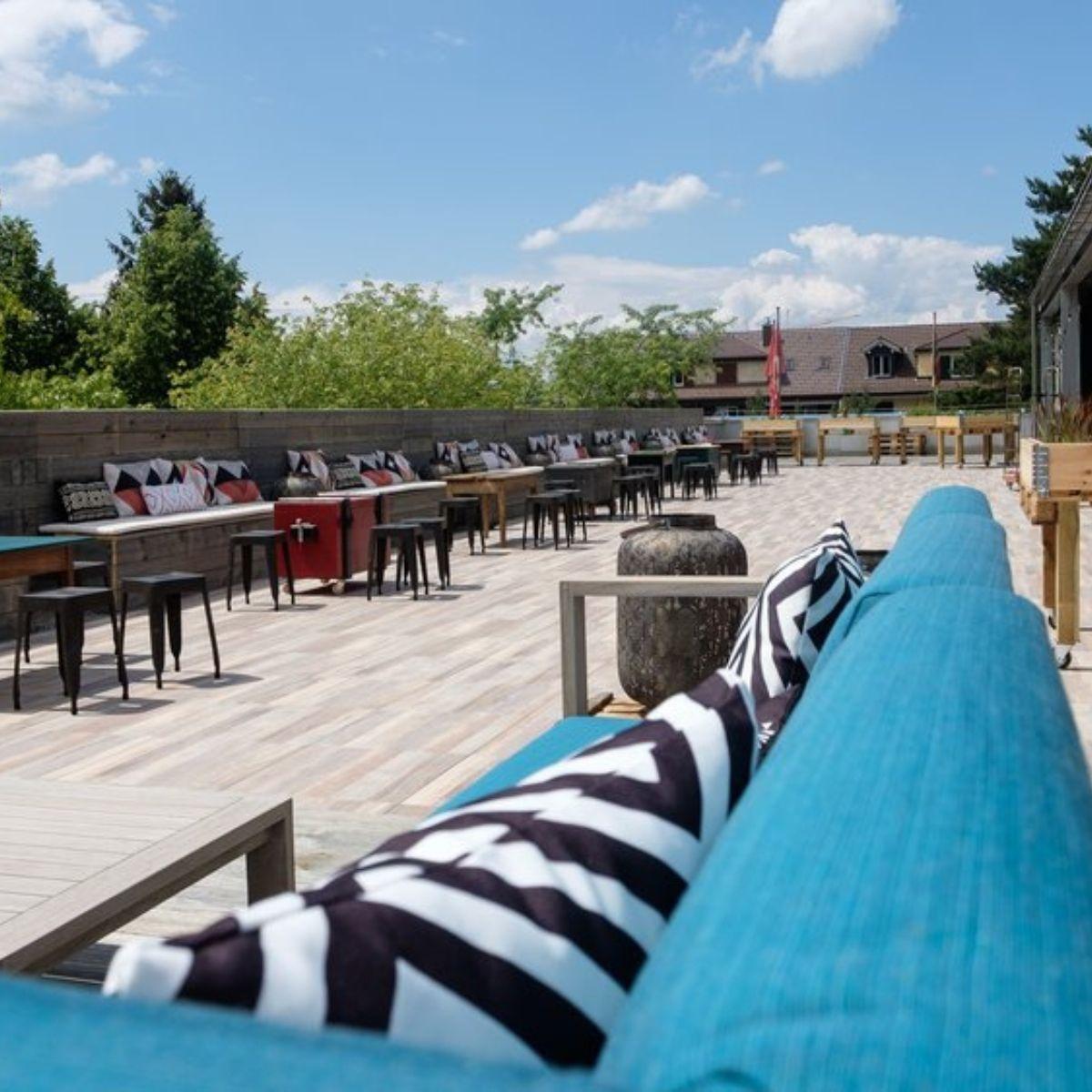 This venue in the west of Bern is perfect for company parties with the whole workforce, lively summer parties, concerts and other events for 150 to 800 people. The 1,200 m2 of interior space offers you modern event technology, plenty of furniture and unique furnishings. With a cocktail in your hand, you can let the sun shine on your face on the 800 m2 roof terrace with the best view.